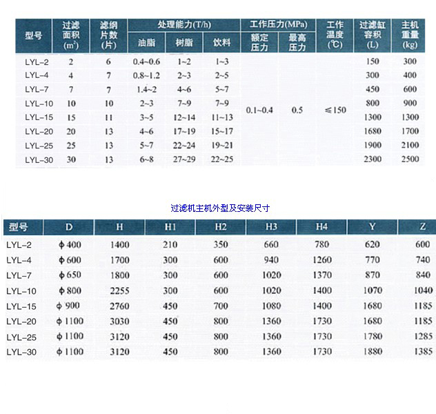 過(guò)濾機(jī)主機(jī)外型及安裝尺寸