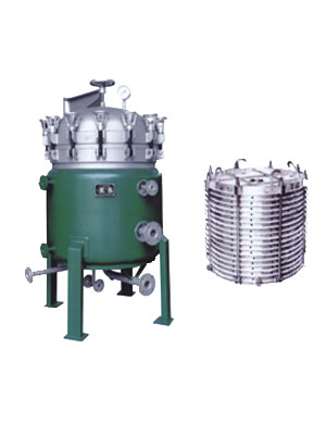 該過(guò)濾機(jī)是在密閉筒體內(nèi),由若干片水平放置的濾板中間裝夾濾紙組成。它是依靠濾紙作過(guò)濾介質(zhì),在密閉窗口內(nèi)進(jìn)行加壓過(guò)濾。過(guò)濾時(shí),濾液由輸送泵送入過(guò)濾機(jī)體內(nèi),沿著濾板外圓周上的小孔進(jìn)入兩層濾板間,濾液穿過(guò)濾紙和多孔支撐板,流入濾板中心孔道,從機(jī)體底部出料口流出。過(guò)濾完后,用壓縮空氣將過(guò)濾機(jī)內(nèi)殘液壓出。